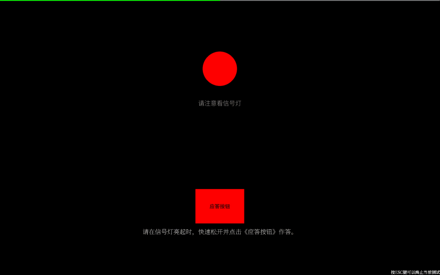 根据提示进行准备,看到信号灯变化后要松开按钮并再次快速点击按钮进行应答,超时未应答自动进入下一轮。