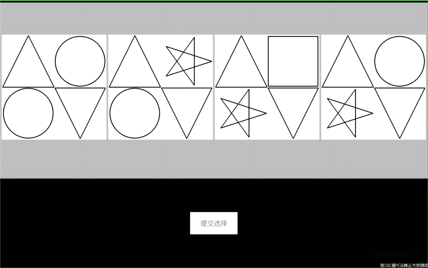 3、选择性注意力与干扰抑制能力: 后续呈现的4张图为“相似图形”,构成强干扰刺激。被试需从干扰中精准定位目标图形,体现选择性注意力(优先聚焦于与原始图形匹配的关键特征,忽略无关干扰);同时,需抑制对“相似但非目标”图形的错误反应(如因图形局部相似而误选),这涉及抑制控制(执行功能的核心,避免冲动性错误选择)。