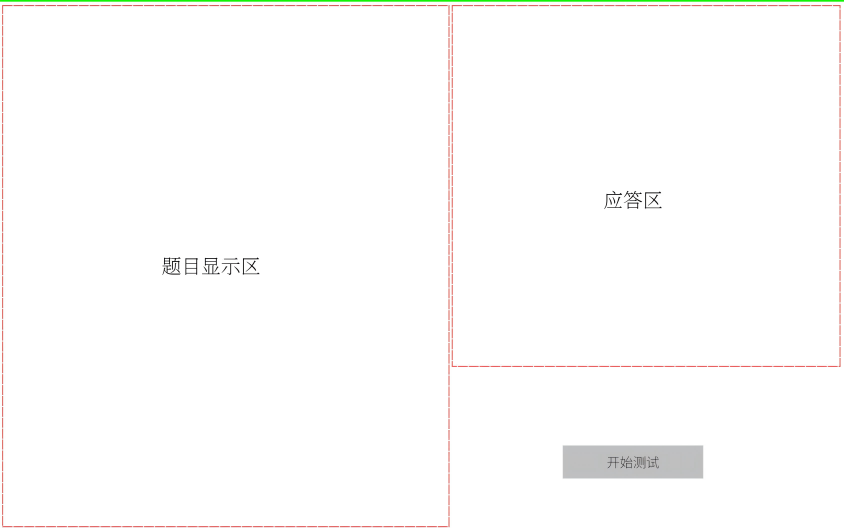 下面我们开始进行形状知觉测试,点击《开始测试》按钮后,屏幕上会在“题目显示区”和“应答区”同时显示一个图形,图形形状可能是水平线、垂直线或矩形。应答区的图形上有控制按钮,拖动控制按钮调整图形大小,使其与题目显示区的图形大小相同,然后点击《确认》按钮提交答案。